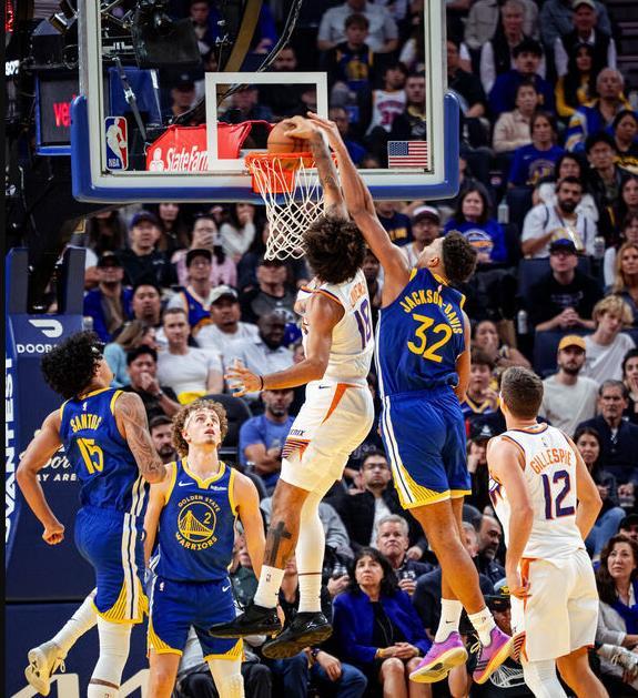 二号功臣(波斯特):首发登场效果级佳,7投5中三分球6中4得14分6篮板3助攻1抢断2盖帽,一上来连续三分球投懵太阳,防守端多次篮下护框成功,与上赛季相比提升非常明显,是此役勇士赢球二号功臣!