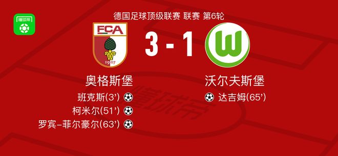 奥格斯堡3-1沃尔夫斯堡,罗宾-菲尔豪尔破门,柯米尔1射1传